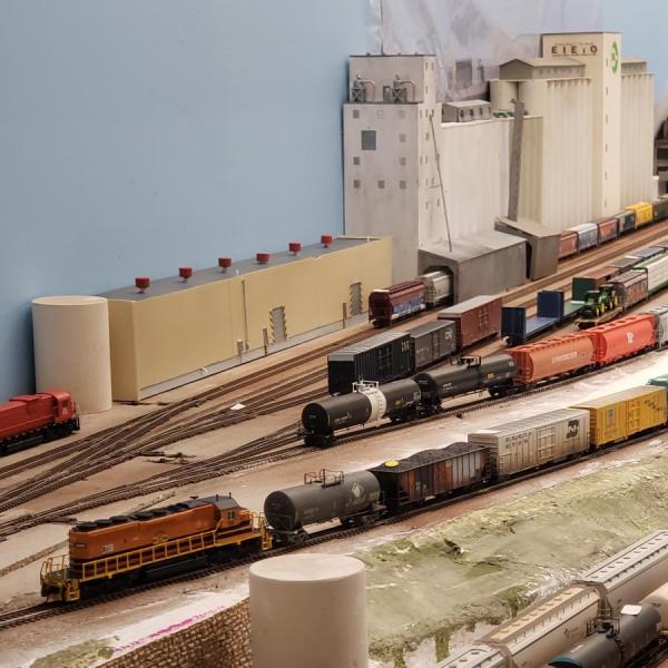 The Midwest Terminal is a generic walk in, U shaped switching layout representing an industrial area branch line in a big Midwestern city. (rotating between Chicago, St. Paul, KC or others with different locomotives for each session).
