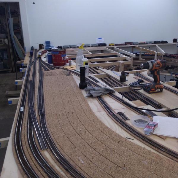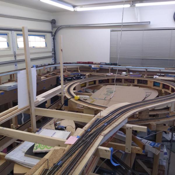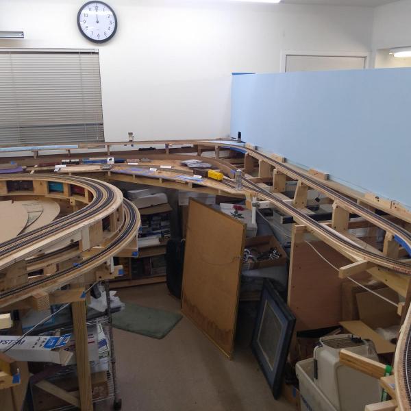 The layout was previously fully operational, but recently about 1/3 of the layout was torn down and is being rebuilt/redesigned to accommodate better operating activities. The redesign will not only make operations better, but will also add about 25% more railroad in the same footprint.